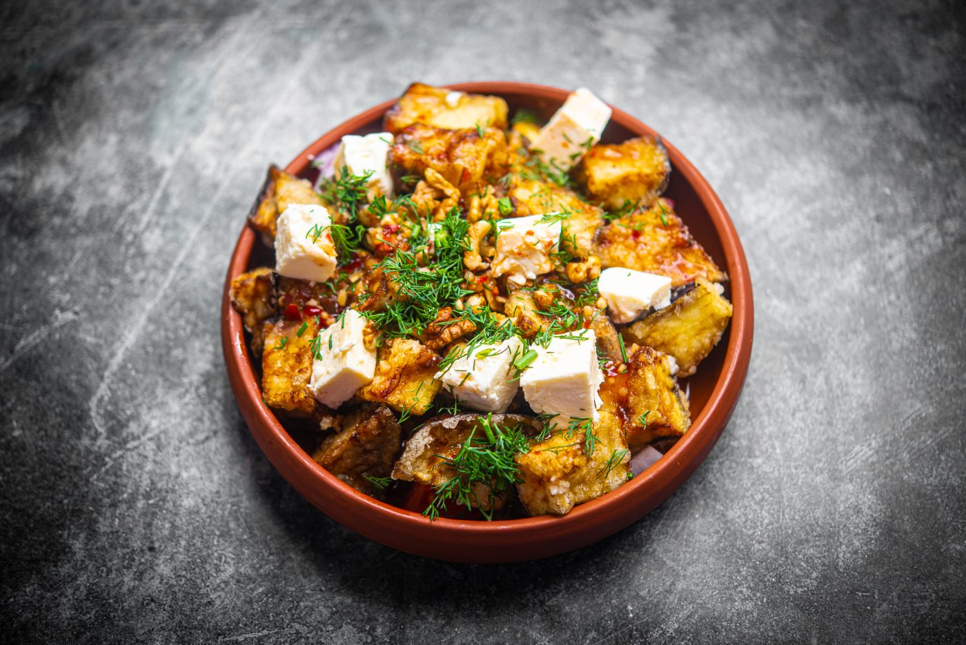 Теплый салат с баклажанами и сыром фета